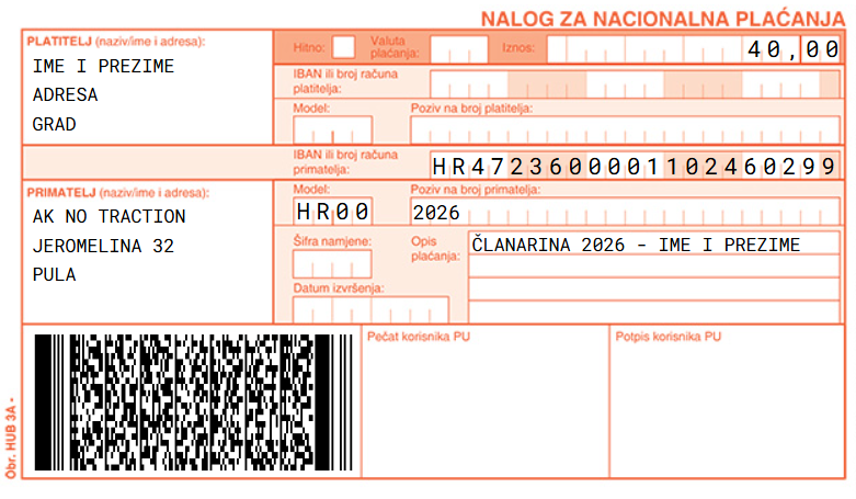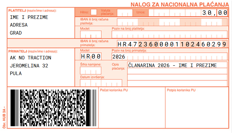 Opis plaćanja: Članarina za 2026 – Ime i prezime